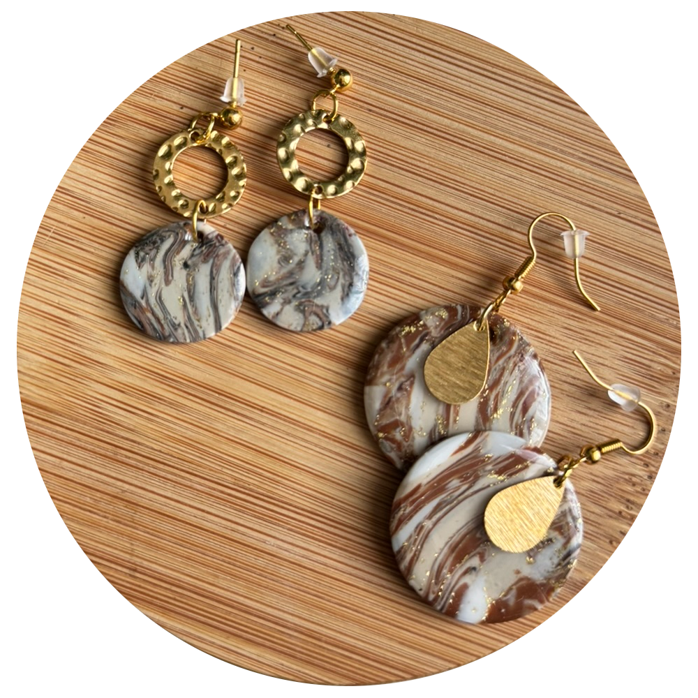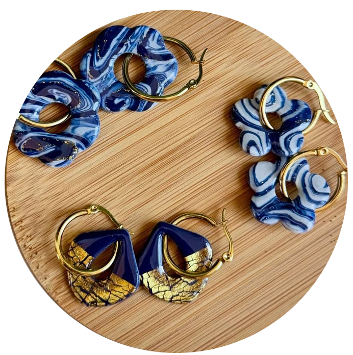 Je conçois avec soin des bijoux uniques, fabriqués à la main en pâte polymère, dans mon atelier situé en Seine-et-Marne, au cœur de la France.